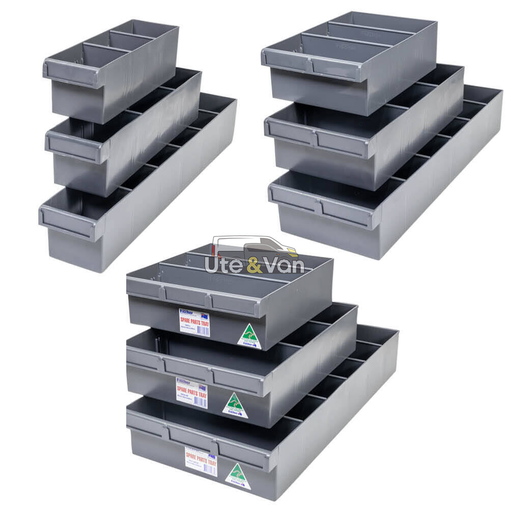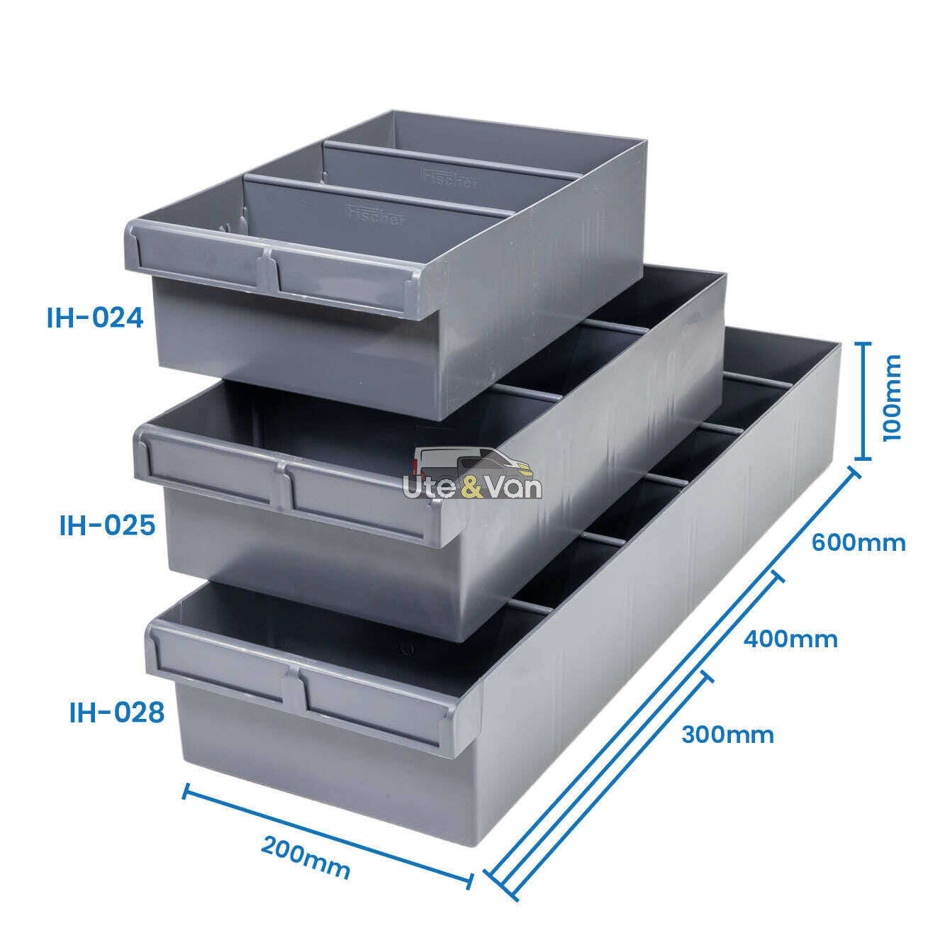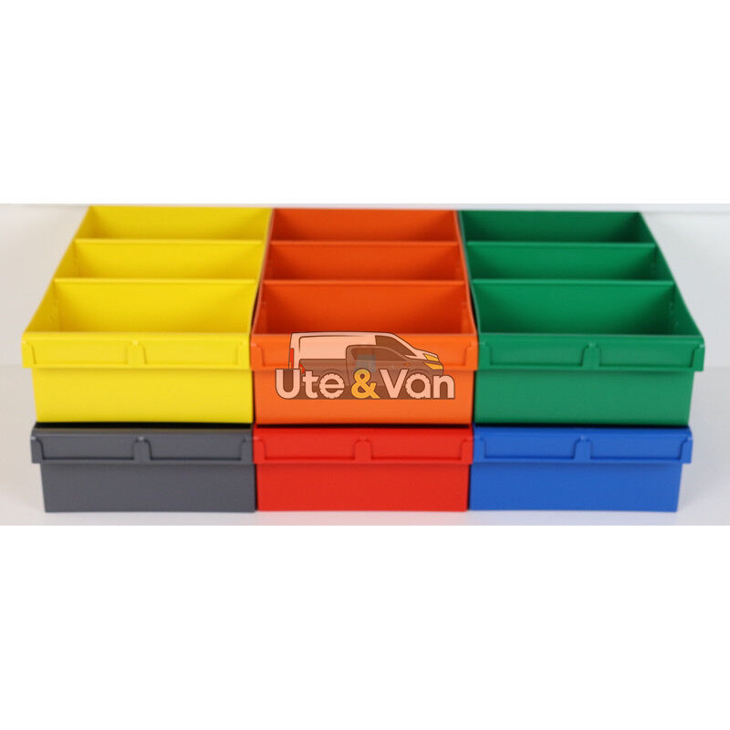 Blue Plastic Tray Storage Tub Tech Bin (300 L x 200 W x 100 H) with Dividers - suits 300mm Shelf