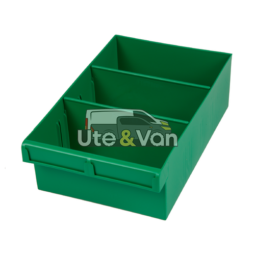 Green Plastic Tray Storage Tub Tech Bin (300 L x 200 W x 100 H) with Dividers - suits 300mm Shelf