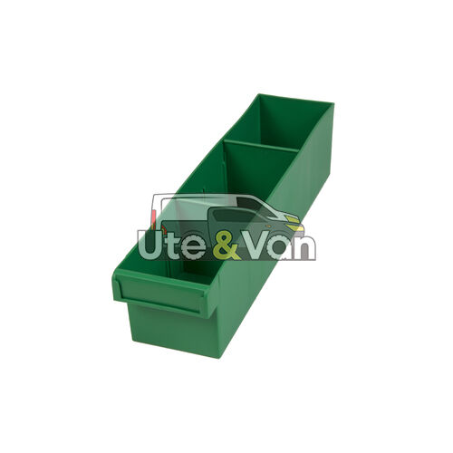 Green Plastic Tray Storage Tub Tech Bin (400 L x 100 W x 100 H) with Dividers - suits 400mm Shelf