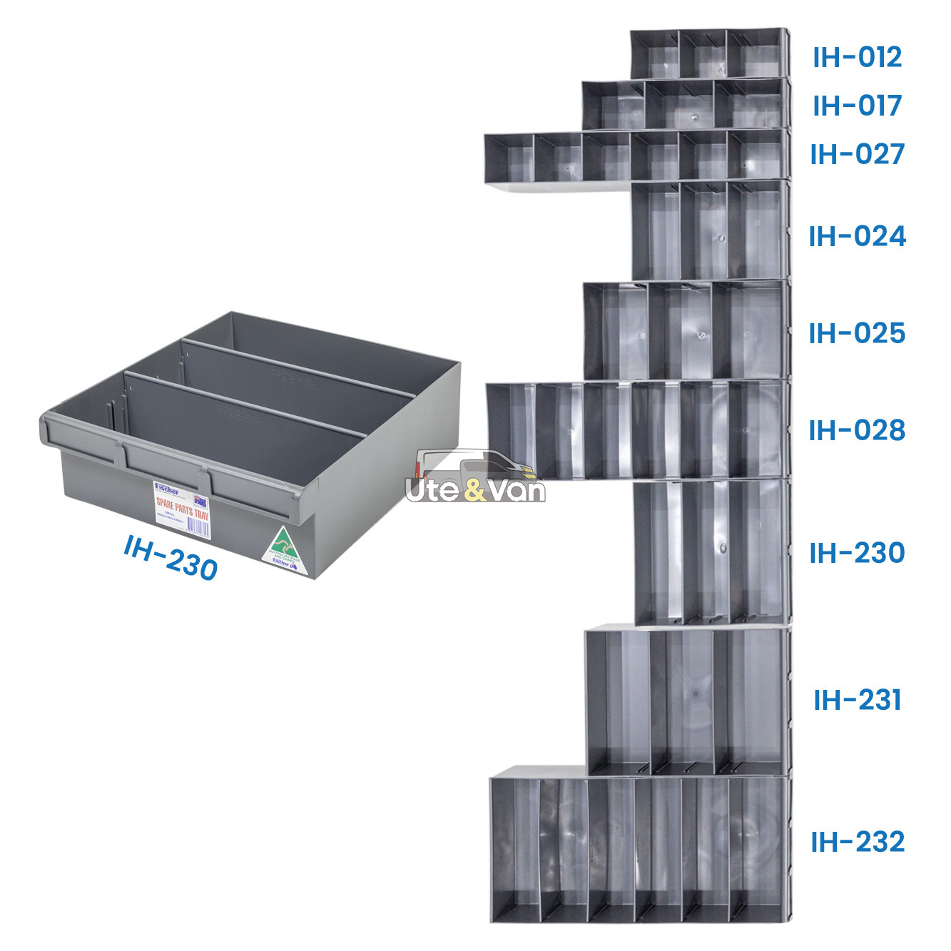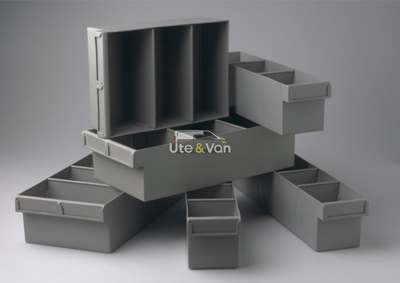 Green Plastic Tray Storage Tub Tech Bin (300 L x 300 W x 100 H) with Dividers - suits 300mm Shelf