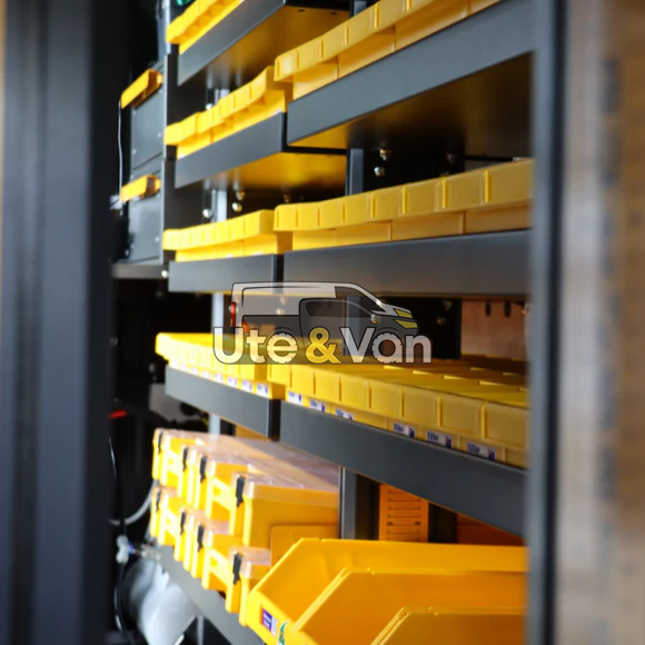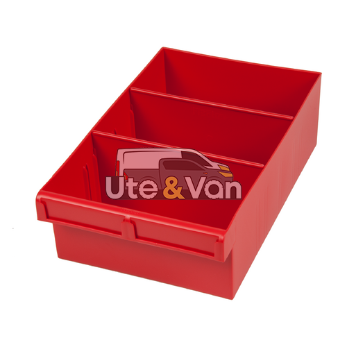 Red Plastic Tray Storage Tub Tech Bin (300 L x 200 W x 100 H) with Dividers - suits 300mm Shelf