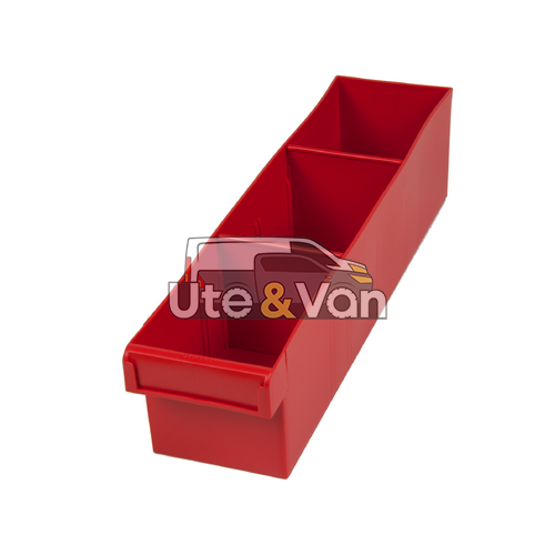 Red Plastic Tray Storage Tub Tech Bin (400 L x 100 W x 100 H) with Dividers - suits 400mm Shelf