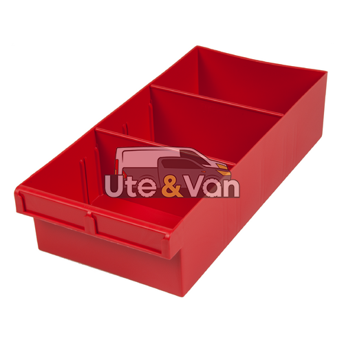 Red Plastic Tray Storage Tub Tech Bin (400 L x 200 W x 100 H) with Dividers - suits 400mm Shelf